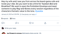 Yazeba's Bed & Breakfast: Stay #1 - Another Rainy Day I brought Yazeba's Bed & Breakfast to a cottage weekend in October of 2024, which was attended by all with the express goal of playing games. Ther...